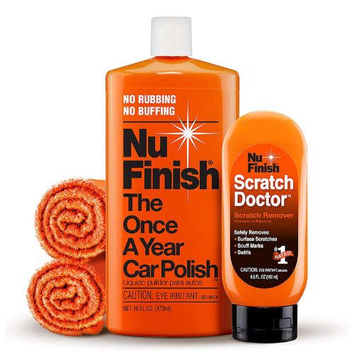 - ALL IN ONE. Nu Finish 4-Piece car care kit solution includes: Scratch Doctor Scratch Remover, 16 oz. bottle of Car Polish, and 2 reusable microfiber cloths